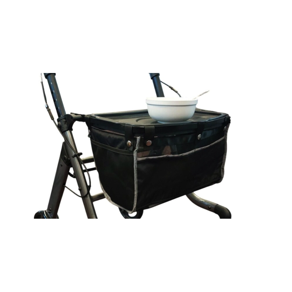 Bij de Alino rollator ontvang je eenย afneembare rollatortasย met zijvakken, perfect voor het veilig meenemen van persoonlijke bezittingen en boodschappen. Het afneembare dienblad maakt het eenvoudig om zelfs een kopje koffie of een lekkere snack van de keuken naar de woonkamer te brengen.