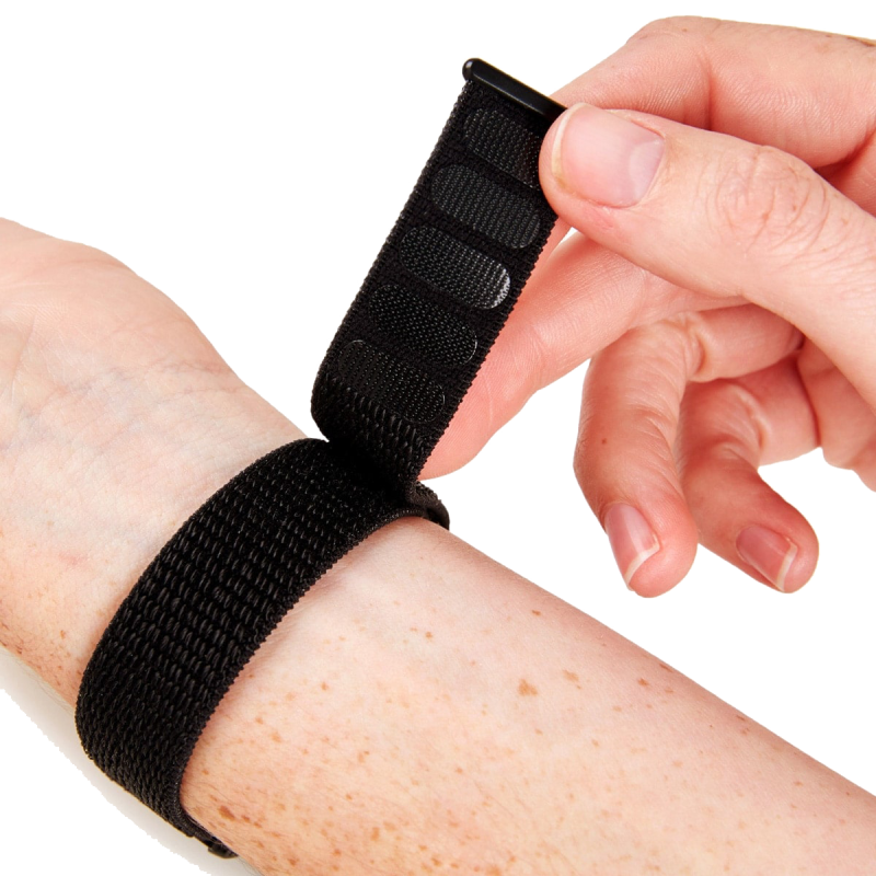 Het LifeWatcher Nylon horlogebandje met klittenbandsluiting is voor hen die moeite hebben om een standaard horlogebandje om te doen.
