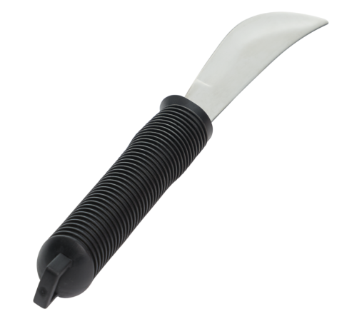 Comfortabel aangepast mes met verdikt handvat voor extra grip. Geschikt voor links- en rechtshandigen. Optioneel met fixatiebandje.