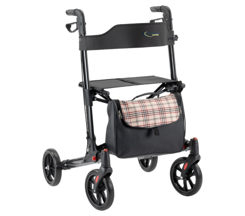 De tas kan eenvoudig worden bevestigd aan uw rollator, maar is ook los te gebruiken dankzij de comfortabele handgreep. Het elegante ruitmotief voegt een trendy touch toe aan uw rollator, terwijl het duurzame Skai-leer zorgt voor langdurige kwaliteit. Met deze tas heeft u altijd alles bij de hand, of u nu een korte wandeling maakt of een langere uitje plant.