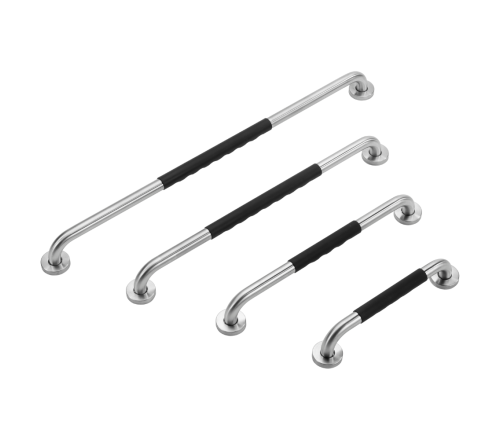 Stevige RVS wandbeugel met luxe uitstraling en zachte siliconen handgreep. Biedt extra steun en een comfortabele, veilige grip in de badkamer.
