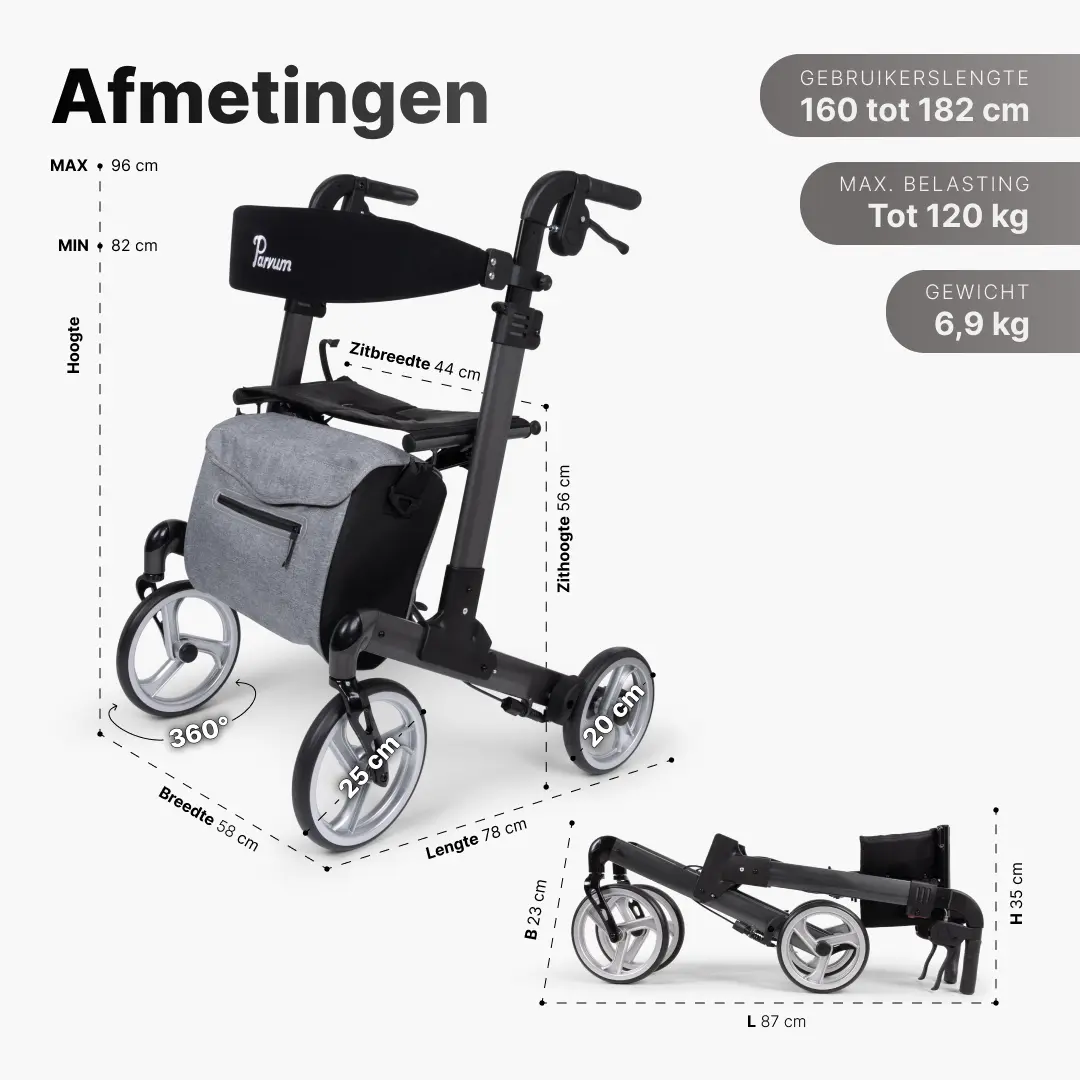 Kies voor de Parvum Rollator Luxo en geniet van zelfstandigheid en comfort โ bestel vandaag nog!