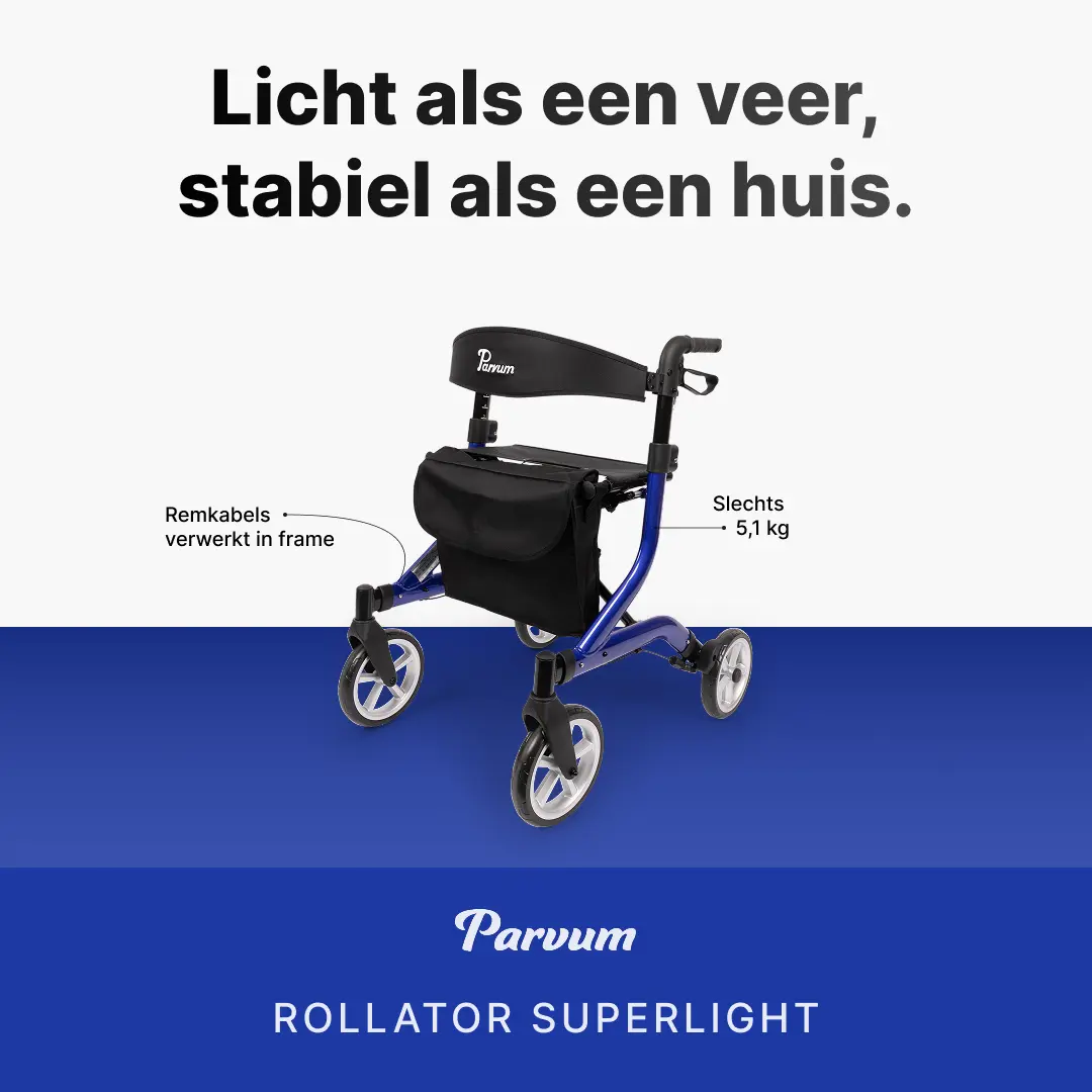 Ervaar zelf het gemak en de vrijheid van de Parvum Rollator SuperLight en bestel vandaag nog!